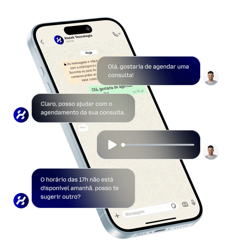 Seu agente pode ouvir e enviar áudios, ler e responder textos e enviar arquivos. Tudo isso para seu paciente se sentir acolhido e valorizado.